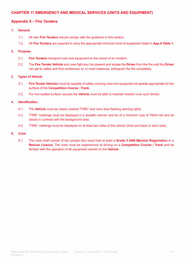 1. General 1.1. All new Fire Tenders should comply with the guidance in this section. 1.2. All Fire Tenders are required to carry the appropriate minimum level of equipment listed in App. 9 Table 1.