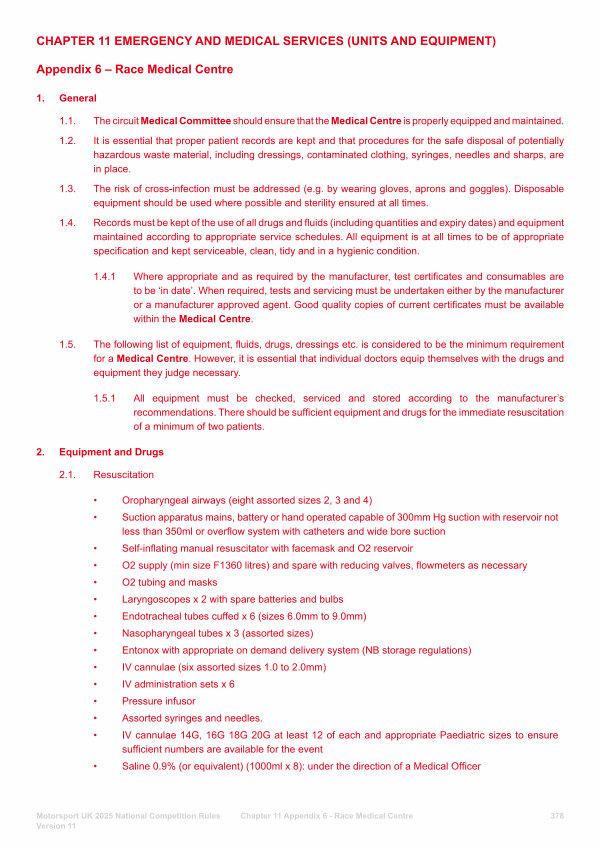 CHAPTER 11 EMERGENCY AND MEDICAL SERVICES( UNITS AND EQUIPMENT) Appendix 6 – Race Medical Centre