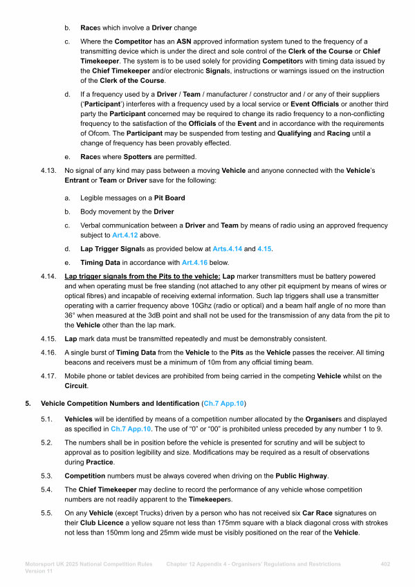 Chapter 12 Appendix 4- Organisers’ Regulations and Restrictions 402