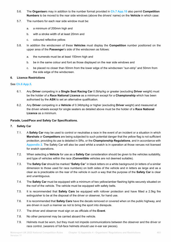 7.6. It is recommended that Safety Cars have the decals removed or covered when on the public highway, and are driven in such a manner as not to bring the sport into disrepute.