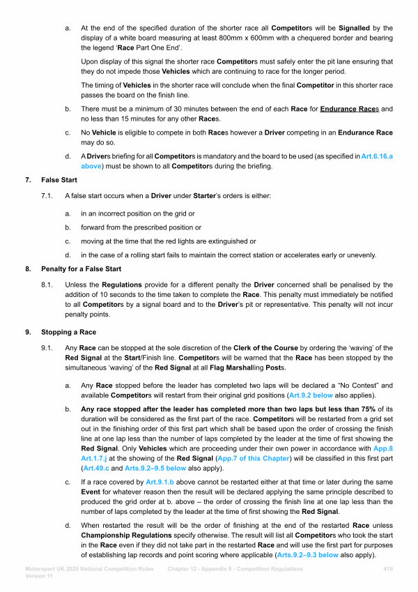 7. False Start 7.1. A false start occurs when a Driver under Starter’ s orders is either: