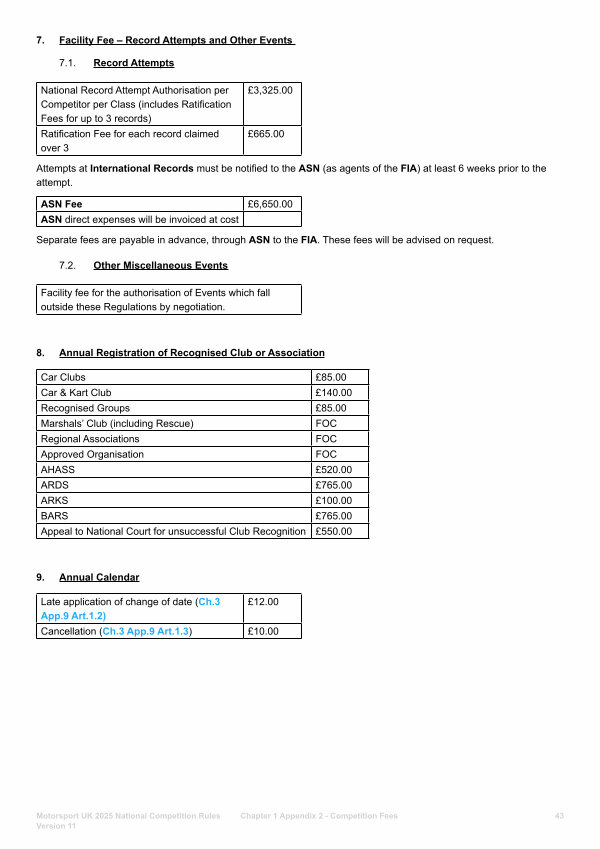 Separate fees are payable in advance, through ASN to the FIA. These fees will be advised on request.