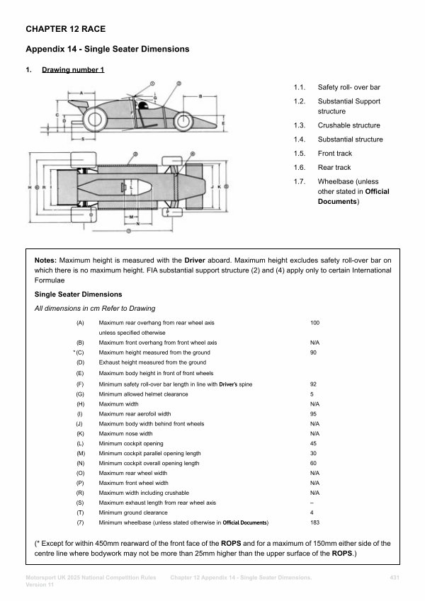 CHAPTER 12 RACE Appendix 14- Single Seater Dimensions