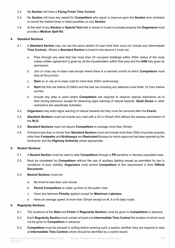 6. Regularity Sections 6.1. The locations of the Start and Finish of Regularity Sections must be given to Competitors in advance.