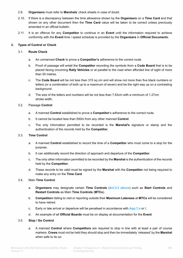 2.9. Organisers must refer to Marshals’ check sheets in case of doubt.