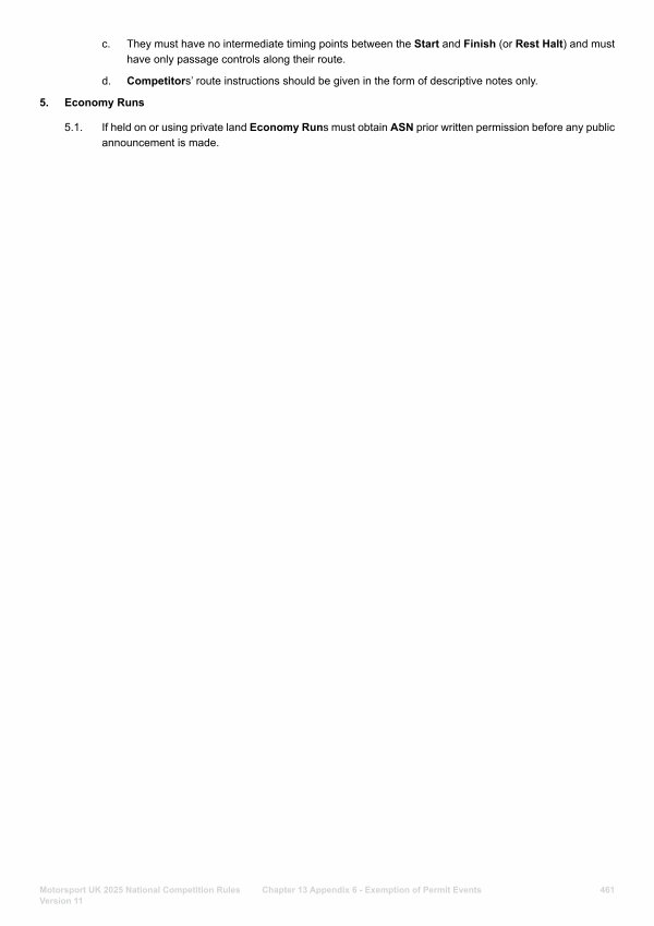 5.1. If held on or using private land Economy Runs must obtain ASN prior written permission before any public announcement is made.