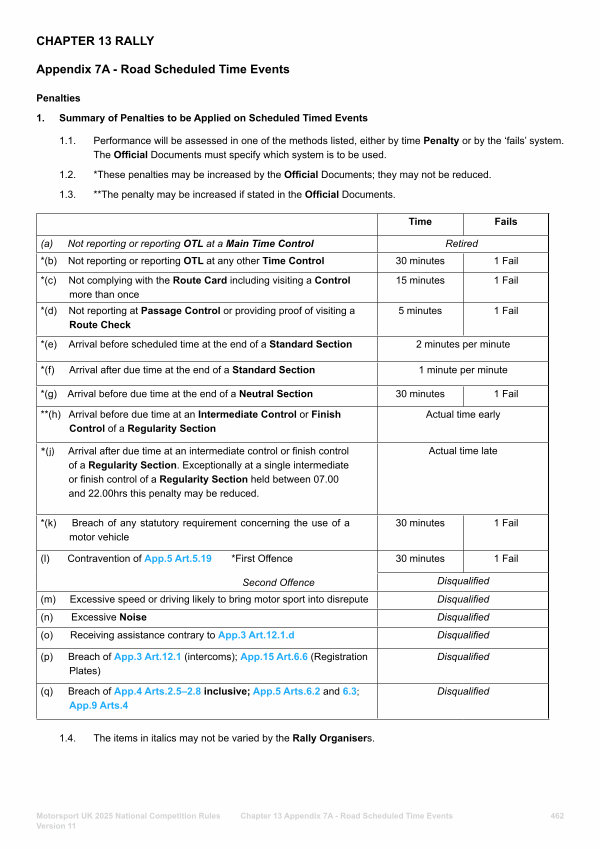 CHAPTER 13 RALLY Appendix 7A- Road Scheduled Time Events