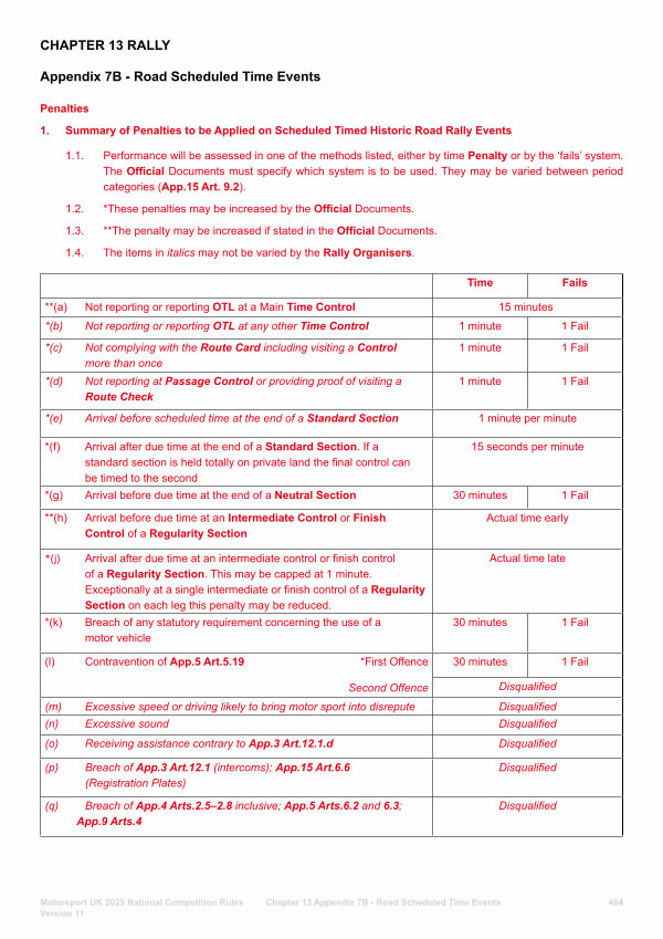 1.2. * These penalties may be increased by the Official Documents. 1.3. ** The penalty may be increased if stated in the Official Documents. 1.4. The items in italics may not be varied by the Rally Organisers.
