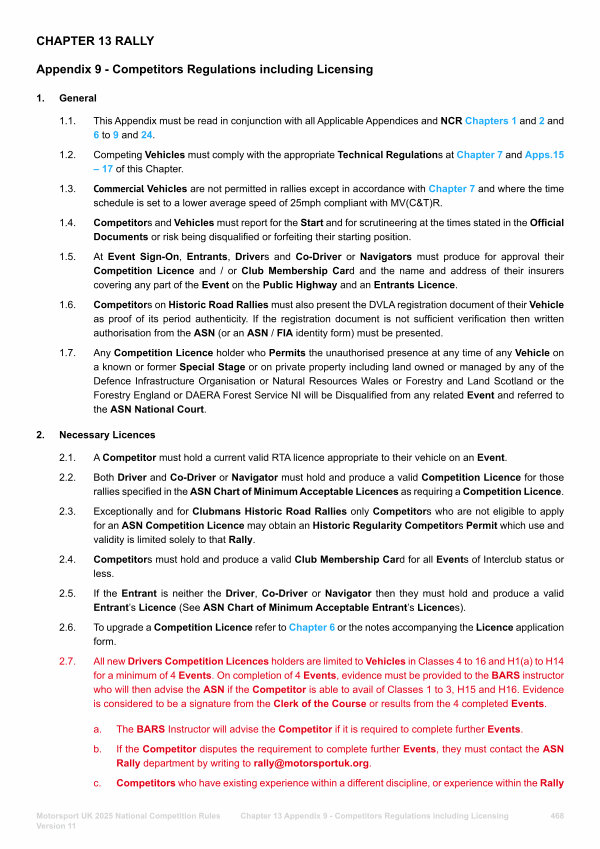 CHAPTER 13 RALLY Appendix 9- Competitors Regulations including Licensing