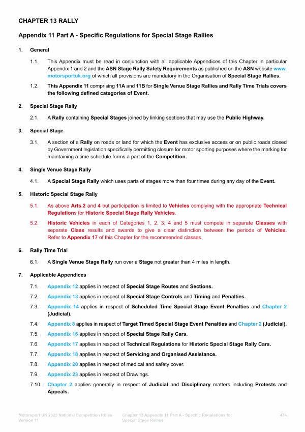 Chapter 13 Appendix 11 Part A- Specific Regulations for Special Stage Rallies