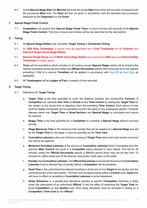 Chapter 13 Appendix 13- Special Stage Controls, Timing and Penalties 489