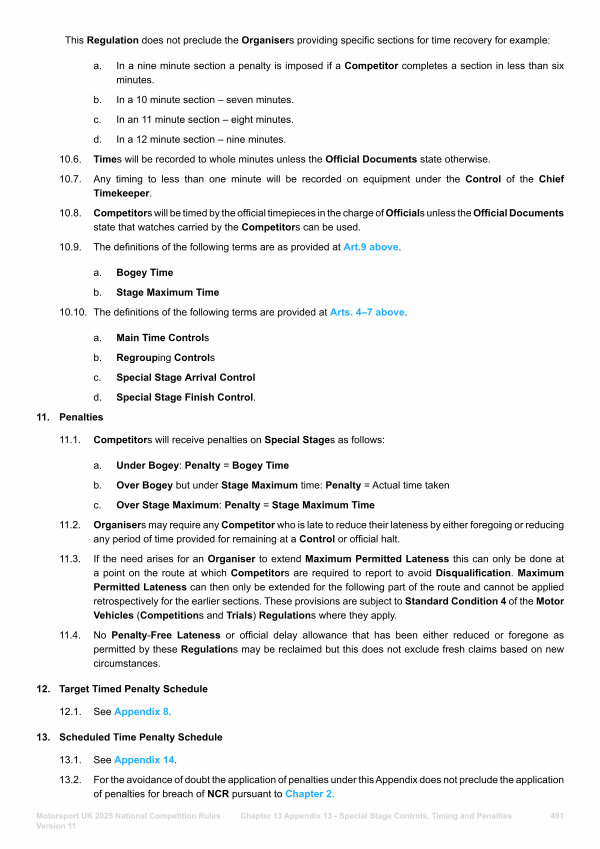 Chapter 13 Appendix 13- Special Stage Controls, Timing and Penalties 491