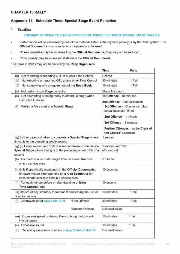 Chapter 13 Appendix 14- Schedule Timed Special Stage Event Penalties 493