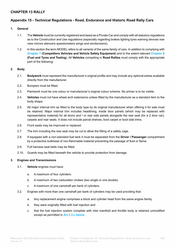 Chapter 13 Appendix 15- Technical Regulations- Road, Endurance and Historic Road Rally Cars