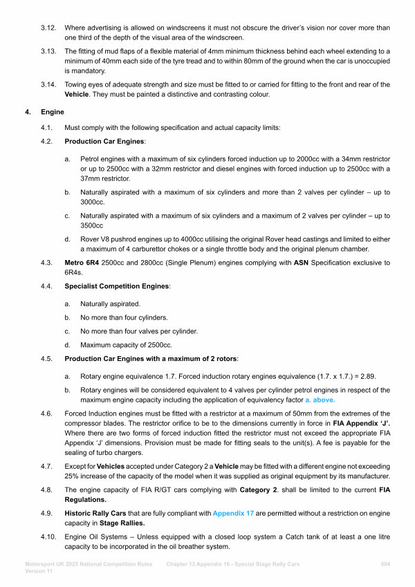 4.9. Historic Rally Cars that are fully compliant with Appendix 17 are permitted without a restriction on engine capacity in Stage Rallies.