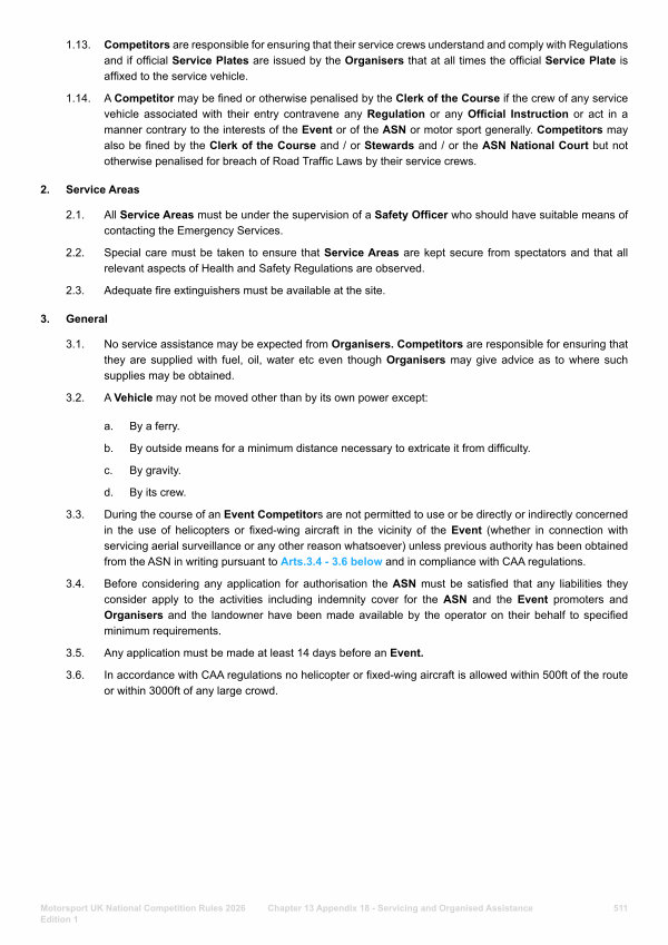 2.2. Special care must be taken to ensure that Service Areas are kept secure from spectators and that all relevant aspects of Health and Safety Regulations are observed.
