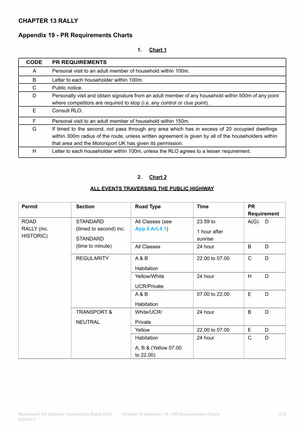 CHAPTER 13 RALLY Appendix 19- PR Requirements Charts