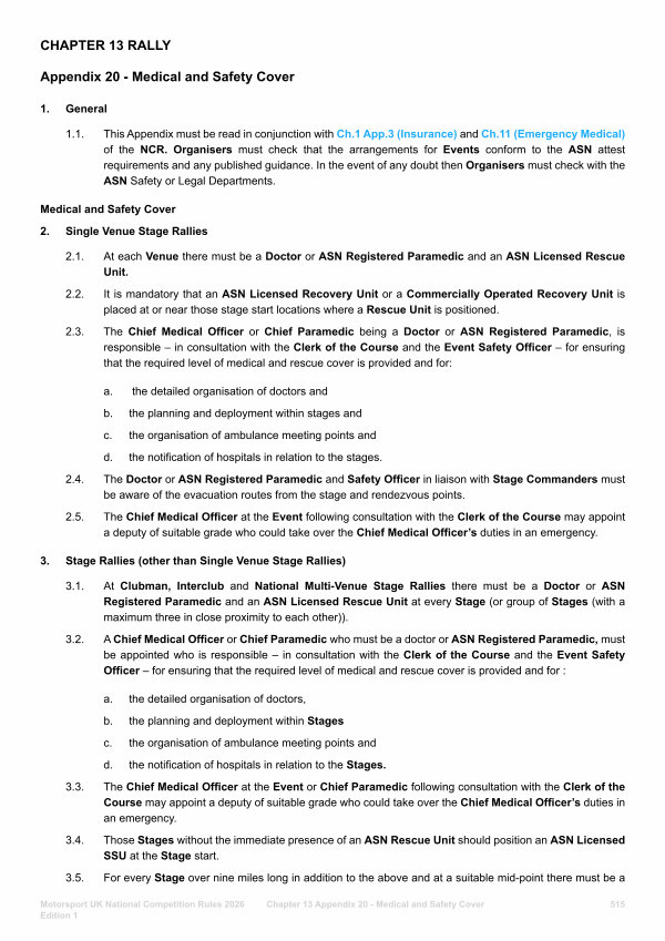 CHAPTER 13 RALLY Appendix 20- Medical and Safety Cover