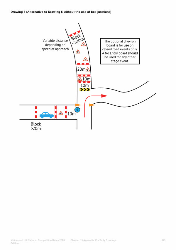 The optional chevron board is for use on closed road events only. A No Entry board should be used for any other stage event.