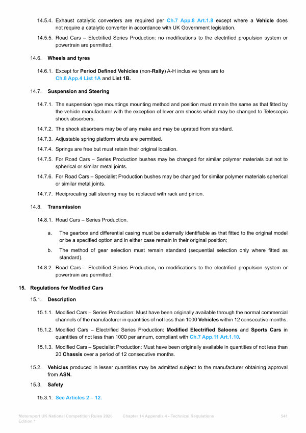 14.7.5. For Road Cars – Series Production bushes may be changed for similar polymer materials but not to spherical or similar metal joints.