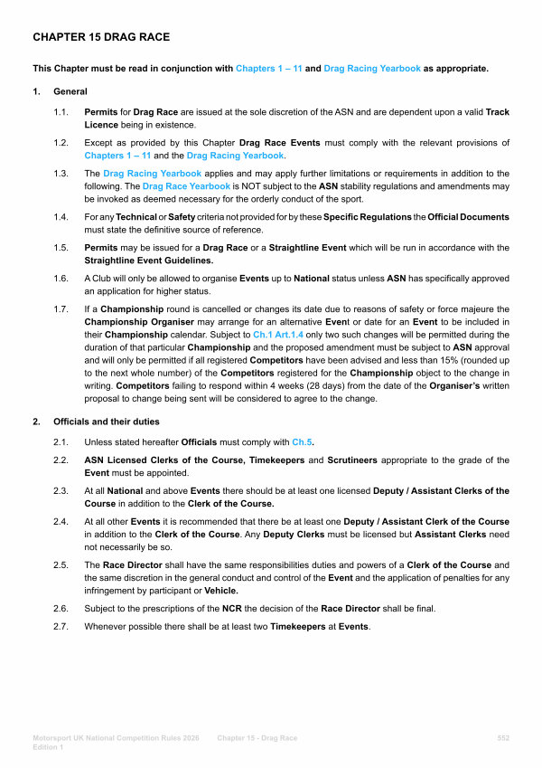 This Chapter must be read in conjunction with Chapters 1 – 11 and Drag Racing Yearbook as appropriate.