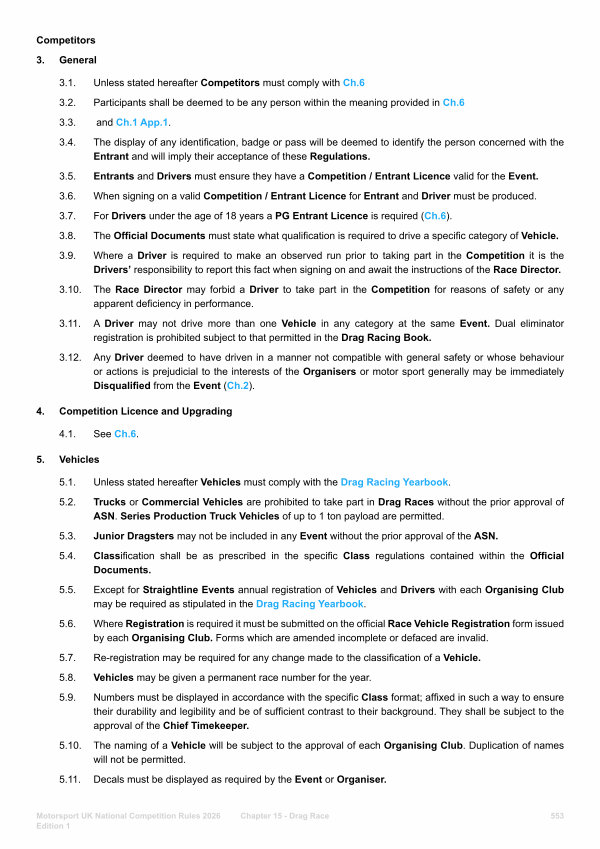 3. General 3.1. Unless stated hereafter Competitors must comply with Ch. 6 3.2. Participants shall be deemed to be any person within the meaning provided in Ch. 6 3.3. and Ch. 1 App. 1.