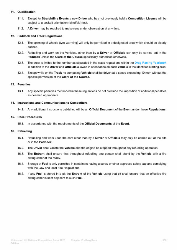 12.3. The crew is limited to the number as stipulated in the class regulations within the Drag Racing Yearbook in addition to the Driver and Officials allowed in attendance on each Vehicle in the identified starting area.