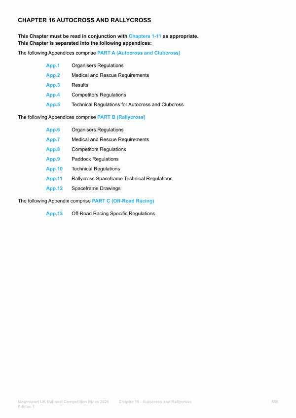 The following Appendices comprise PART A( Autocross and Clubcross)