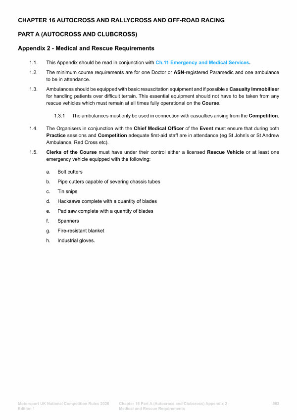 Chapter 16 Part A( Autocross and Clubcross) Appendix 2- Medical and Rescue Requirements