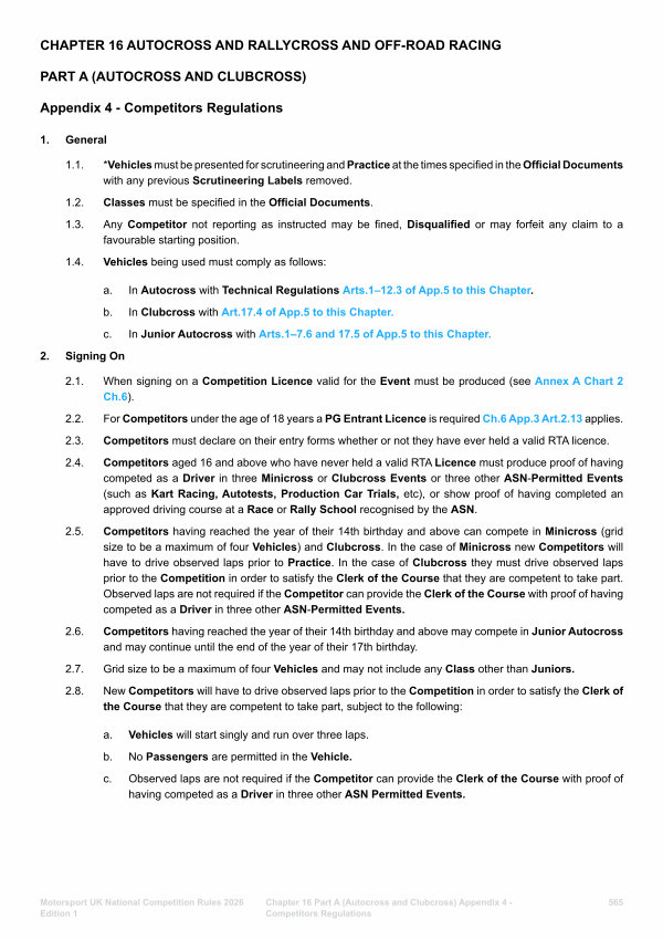 Chapter 16 Part A( Autocross and Clubcross) Appendix 4- Competitors Regulations