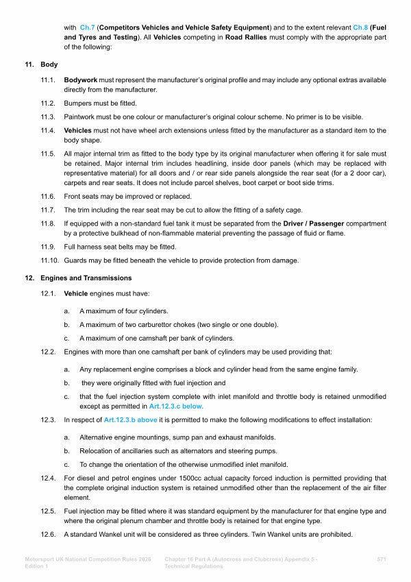 Chapter 16 Part A( Autocross and Clubcross) Appendix 5- Technical Regulations