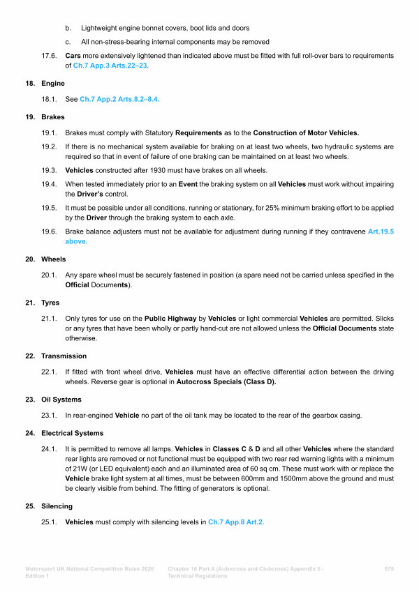 Chapter 16 Part A( Autocross and Clubcross) Appendix 5- Technical Regulations