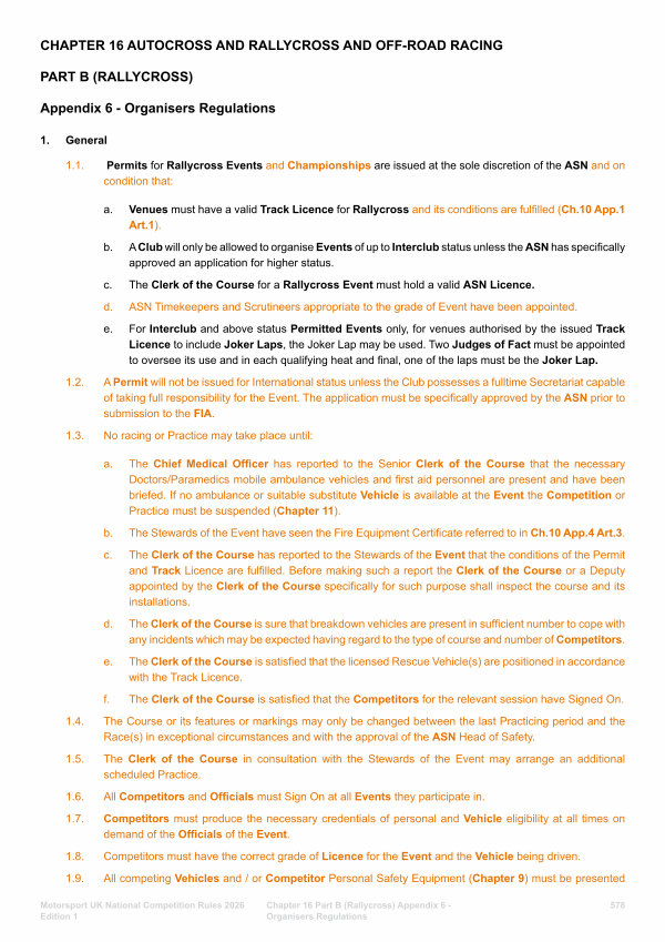 Chapter 16 Part B( Rallycross) Appendix 6- Organisers Regulations