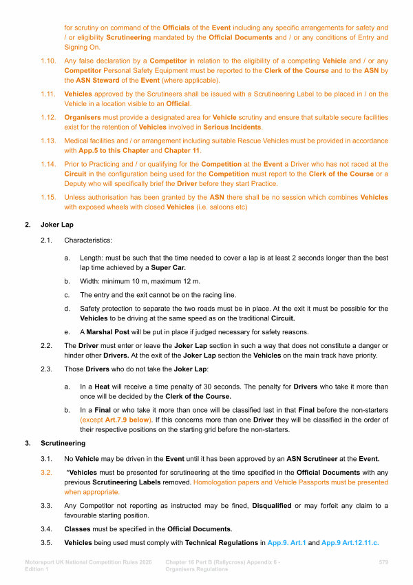 Chapter 16 Part B( Rallycross) Appendix 6- Organisers Regulations