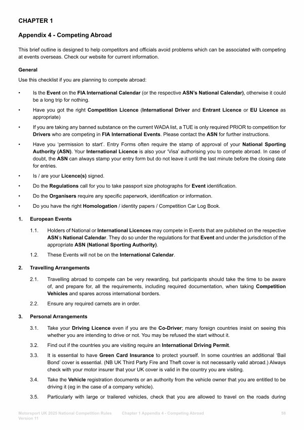 • Have you got the right Competition Licence( International Driver and Entrant Licence or EU Licence as appropriate)