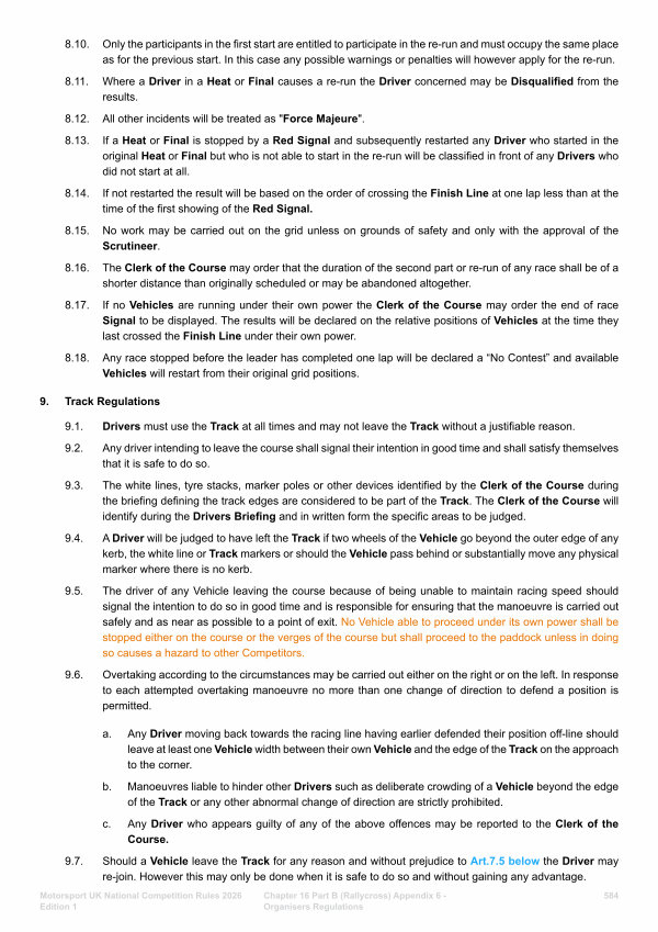 Chapter 16 Part B( Rallycross) Appendix 6- Organisers Regulations