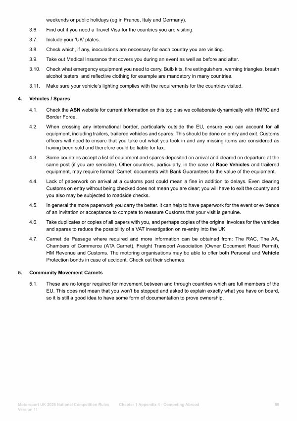 4.3. Some countries accept a list of equipment and spares deposited on arrival and cleared on departure at the same post( if you are sensible). Other countries, particularly, in the case of Race Vehicles and trailered equipment, may require formal‘ Carnet’ documents with Bank Guarantees to the value of the equipment.