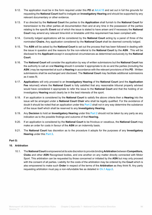 9.18. If an application is considered by the National Court to satisfy the above criteria then a Hearing into the issue will be arranged under a National Court Chair who shall be legally qualified. For the avoidance of doubt it should be noted that an application under this Part 2 shall not in any way determine the substance of the issue itself which shall be reserved to any Investigatory Hearing.