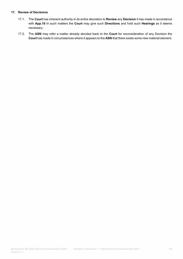 17.2. The ASN may refer a matter already decided back to the Court for reconsideration of any Decision the Court has made in circumstances where it appears to the ASN that there exists some new material element.