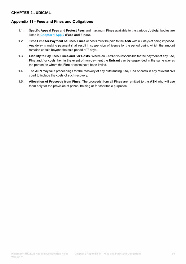 1.1. Specific Appeal Fees and Protest Fees and maximum Fines available to the various Judicial bodies are listed in Chapter 1 App. 2( Fees and Fines).