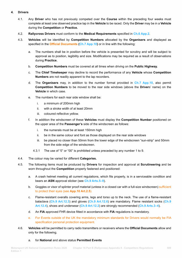 Chapter 16 Part B( Rallycross) Appendix 8- Competitors Regulations 589