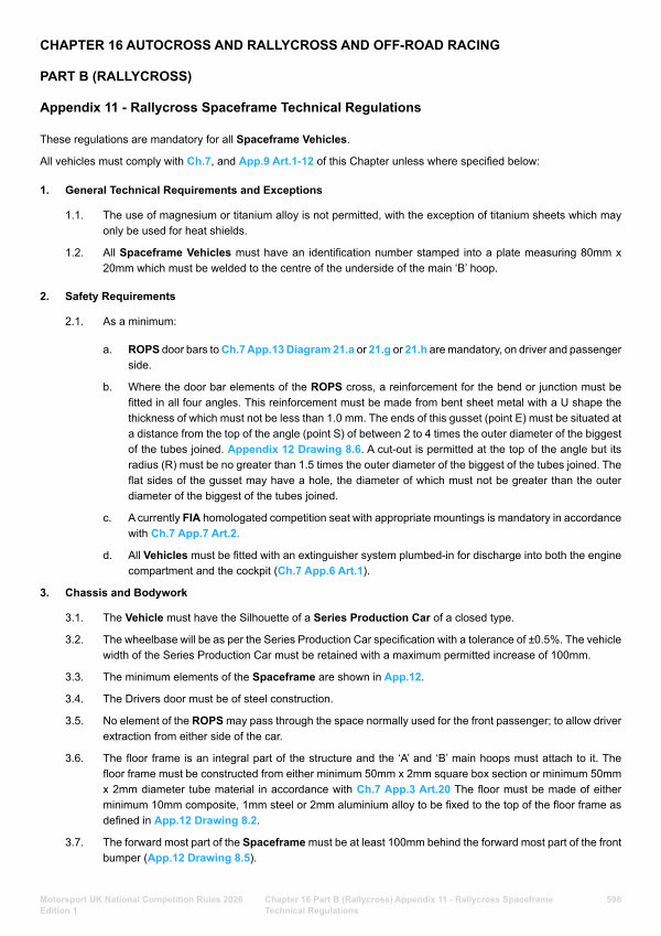 Chapter 16 Part B( Rallycross) Appendix 11- Rallycross Spaceframe Technical Regulations