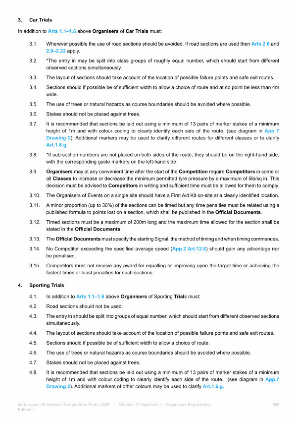 4. Sporting Trials 4.1. In addition to Arts 1.1 – 1.6 above Organisers of Sporting Trials must: 4.2. Road sections should not be used.
