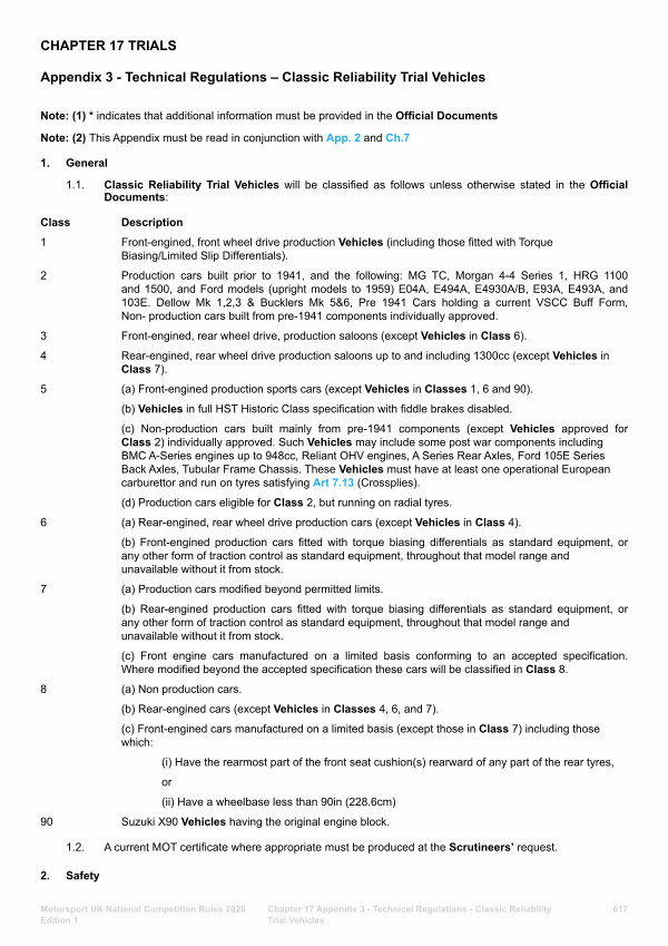 Chapter 17 Appendix 3- Technical Regulations- Classic Reliability Trial Vehicles