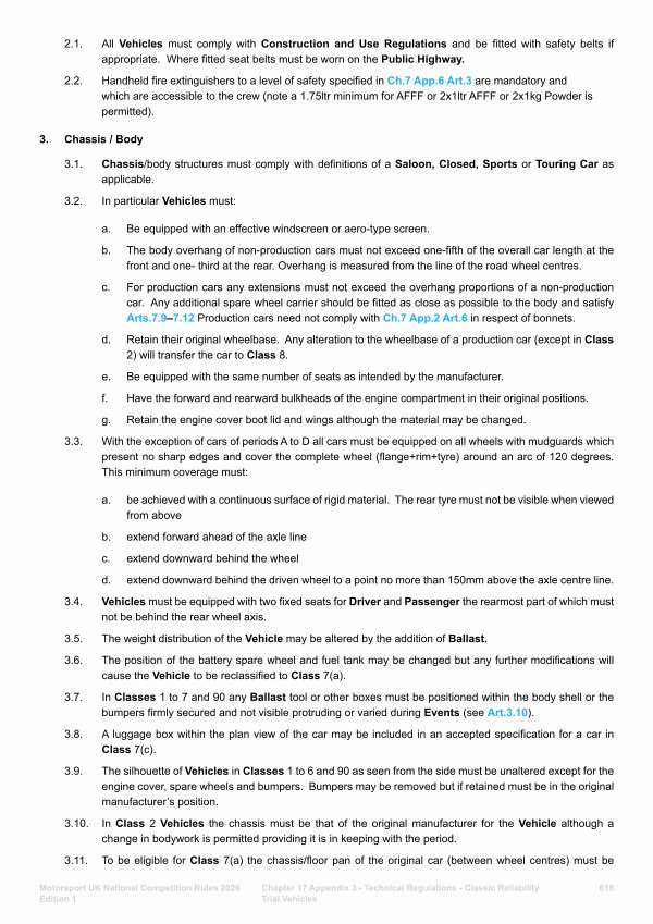 Chapter 17 Appendix 3- Technical Regulations- Classic Reliability Trial Vehicles
