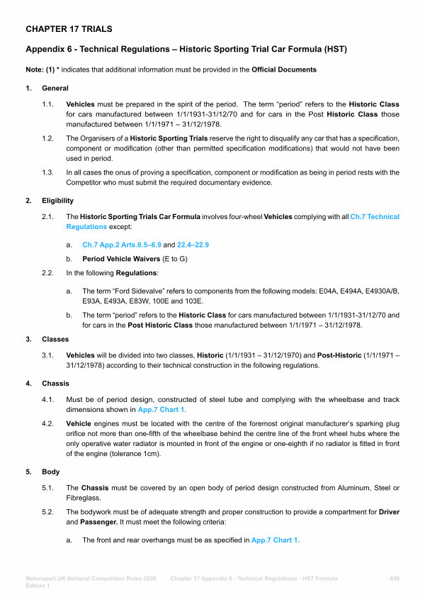 2.1. The Historic Sporting Trials Car Formula involves four-wheel Vehicles complying with all Ch. 7 Technical Regulations except: