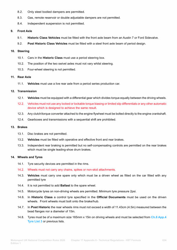 14.4. It is not permitted to add Ballast to the spare wheel. 14.5. Motorcycle tyres on non-driving wheels are permitted. Minimum tyre pressure 2psi.