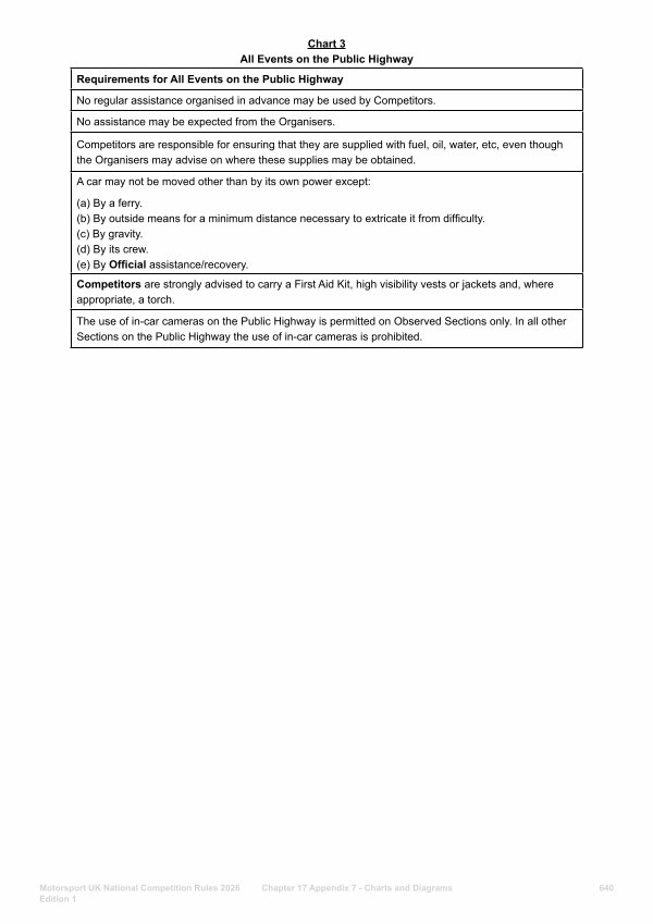 Requirements for All Events on the Public Highway No regular assistance organised in advance may be used by Competitors. No assistance may be expected from the Organisers.