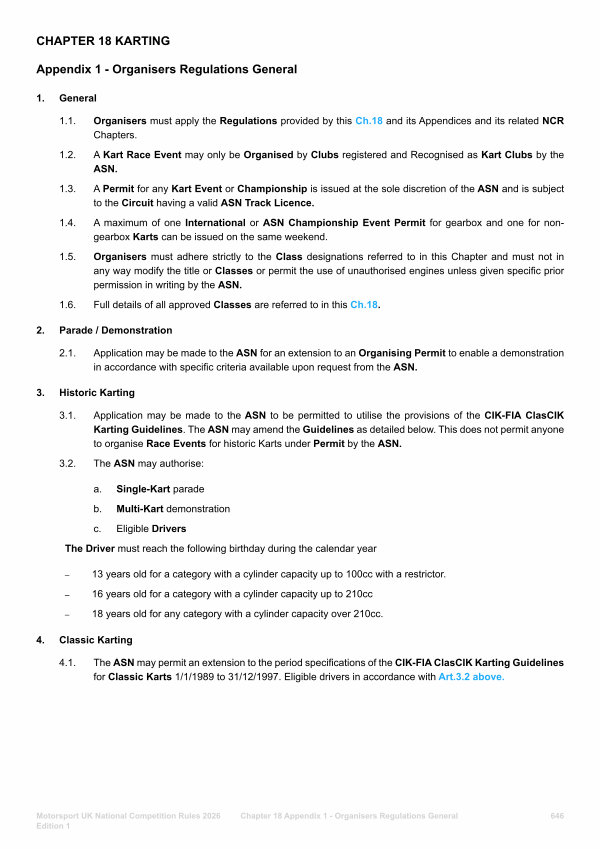 1.1. Organisers must apply the Regulations provided by this Ch. 18 and its Appendices and its related NCR Chapters.