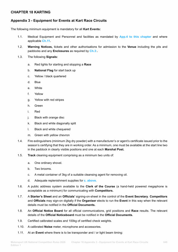 Chapter 18 Appendix 3- Equipment for Events at Kart Race Circuits 649